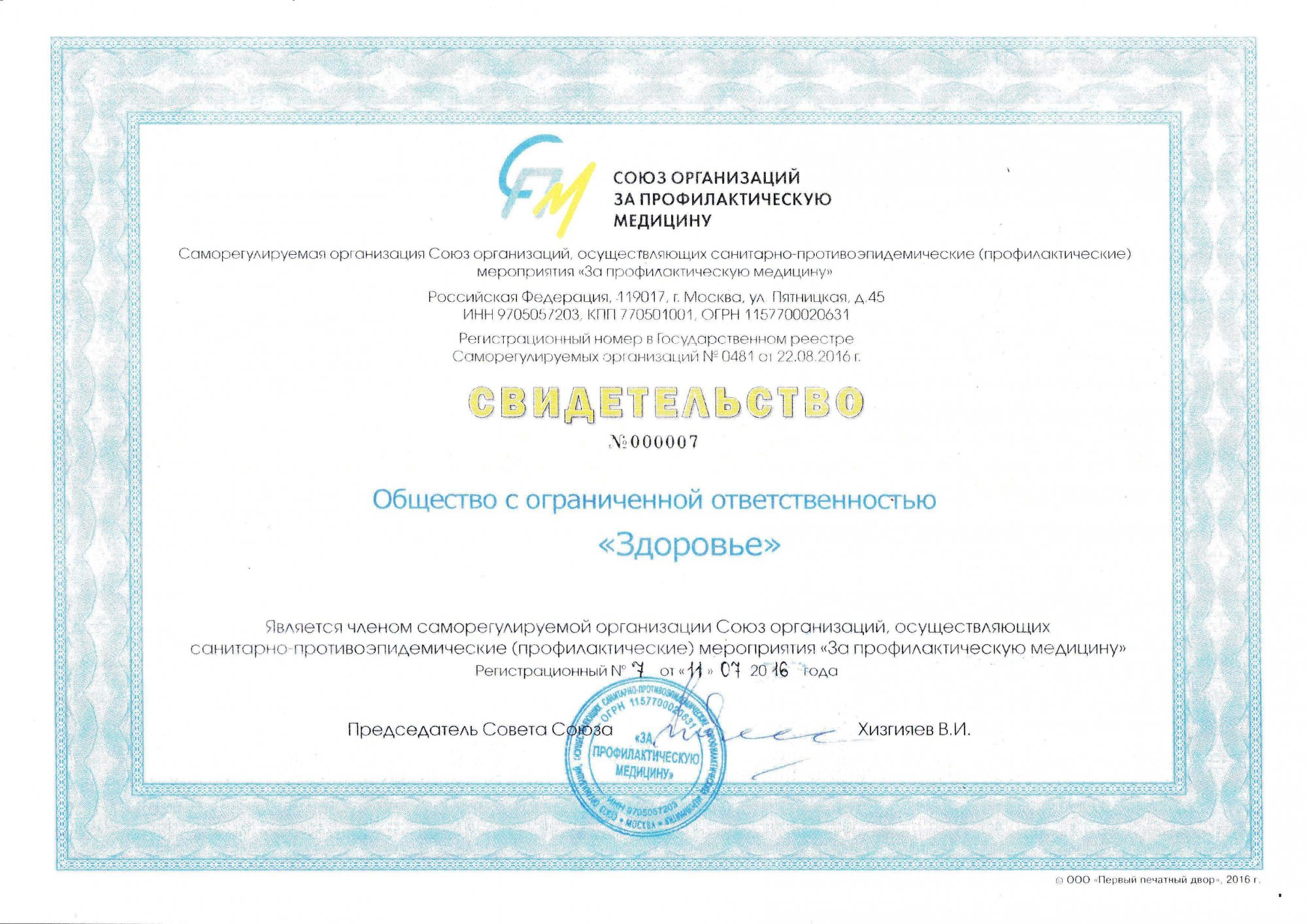 Саморегулируемая организация Союз организаций, осуществляющих санитарно-противоэпидемические (профилактические) мероприятия "За профилактическую медицину".