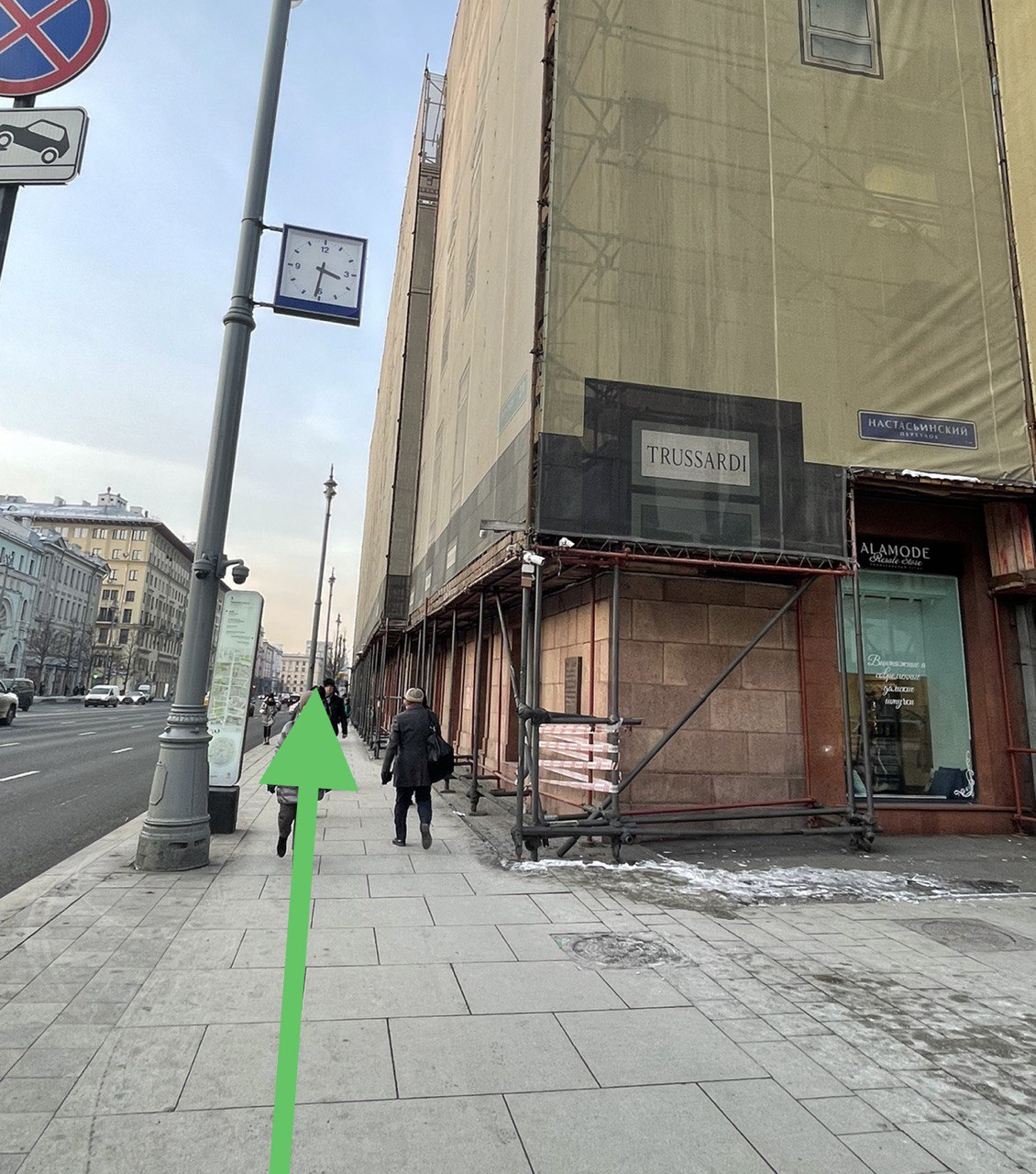 Вам нужно ехать по четной стороне Тверской улицы в направлении "из центра". Таким образом, Кремль будет позади Вас, а Вы будете двигаться в направлении Маяковской, Белорусского вокзала. Пересекаете Настасьинский переулок (не сворачивайте в него!) и двигаетесь вдоль дома № 20 до конца (дом завешен строительной сеткой), проезжаете Веган кафе Sattva, едете далее, пока не увидите кофейню "Это кофейня" и открытые чёрные металлические ворота. Заезжайте в эти ворота. Как заехали в ворота и оказались во дворе, справа увидите калитку, подъезжайте к этой калитке вплотную. Обратите внимание! Прямо перед вами будет шлагбаум-это заезд в ресторан. Вам туда не нужно. Вам же нужно посмотреть направо – увидите калитку. Калитку откроет охранник, которому будет передана заявка на пропуск. Если около калитки никого нет, ожидайте, пожалуйста 1-2 мин. Охрана увидит вас по камере и спуститься, чтобы открыть. Оказавшись во дворе, по левую руку увидите трехэтажное бирюзово-зеленое здание с вывеской «Медицинский центр». Около мед центра расчерчены парковочные места. В случае необходимости охрана поможет припарковаться.