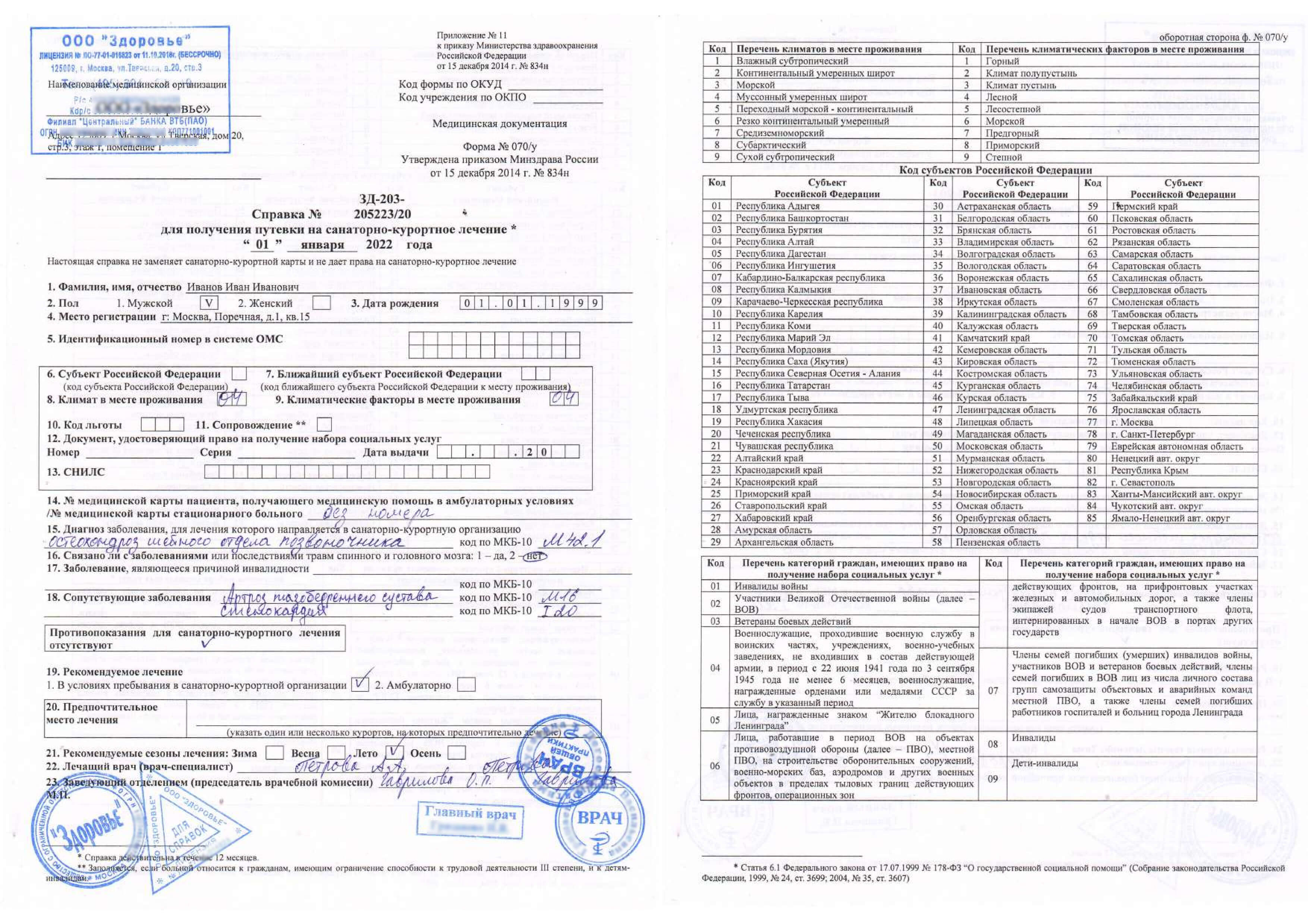 Оформить справку 070у для санатория в Москве