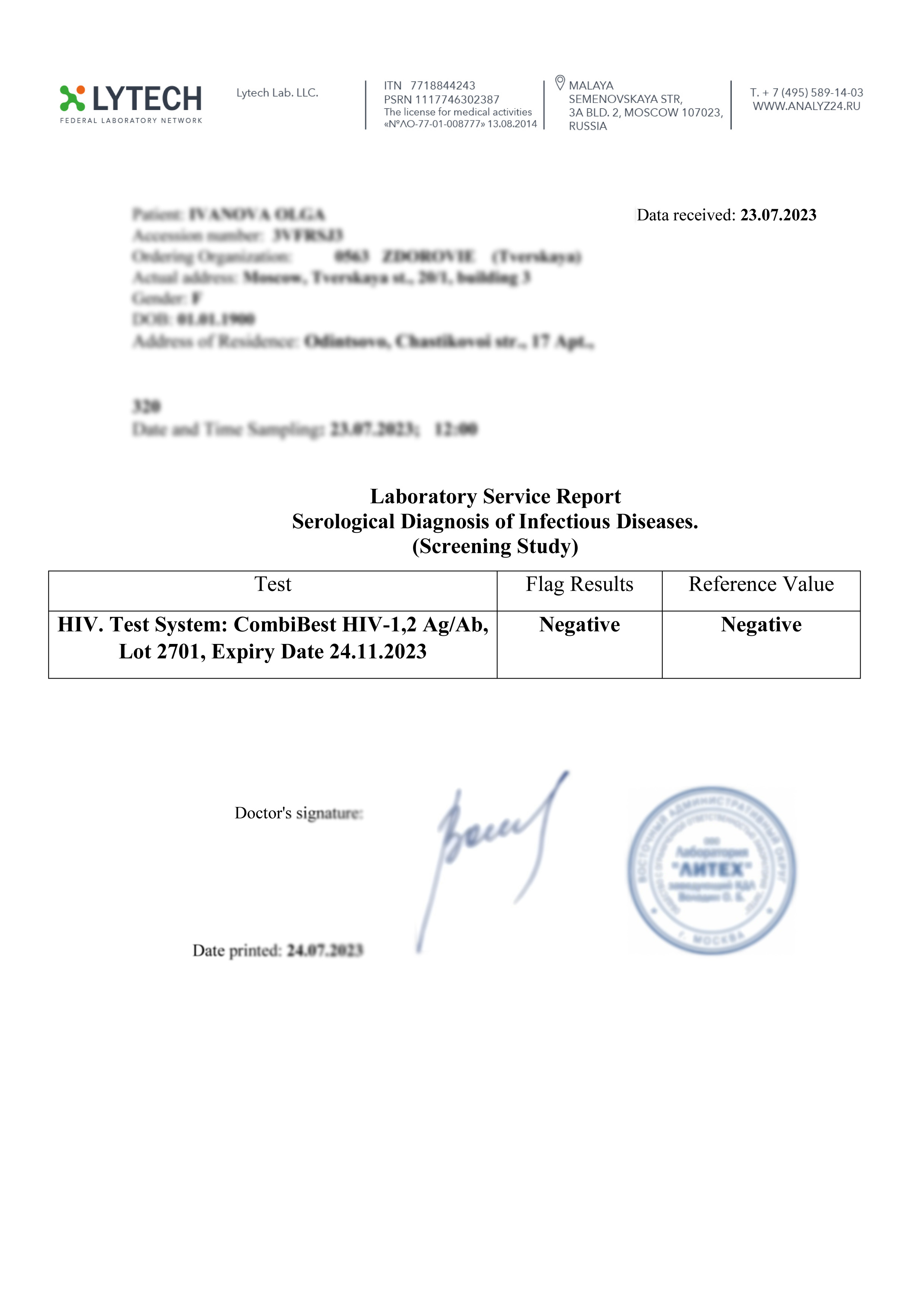 Формат получения результатов: В нашей клинике предоставляется несколько вариантов формата получения результатов анализов на английском языке. Вы можете выбрать удобный для вас способ: