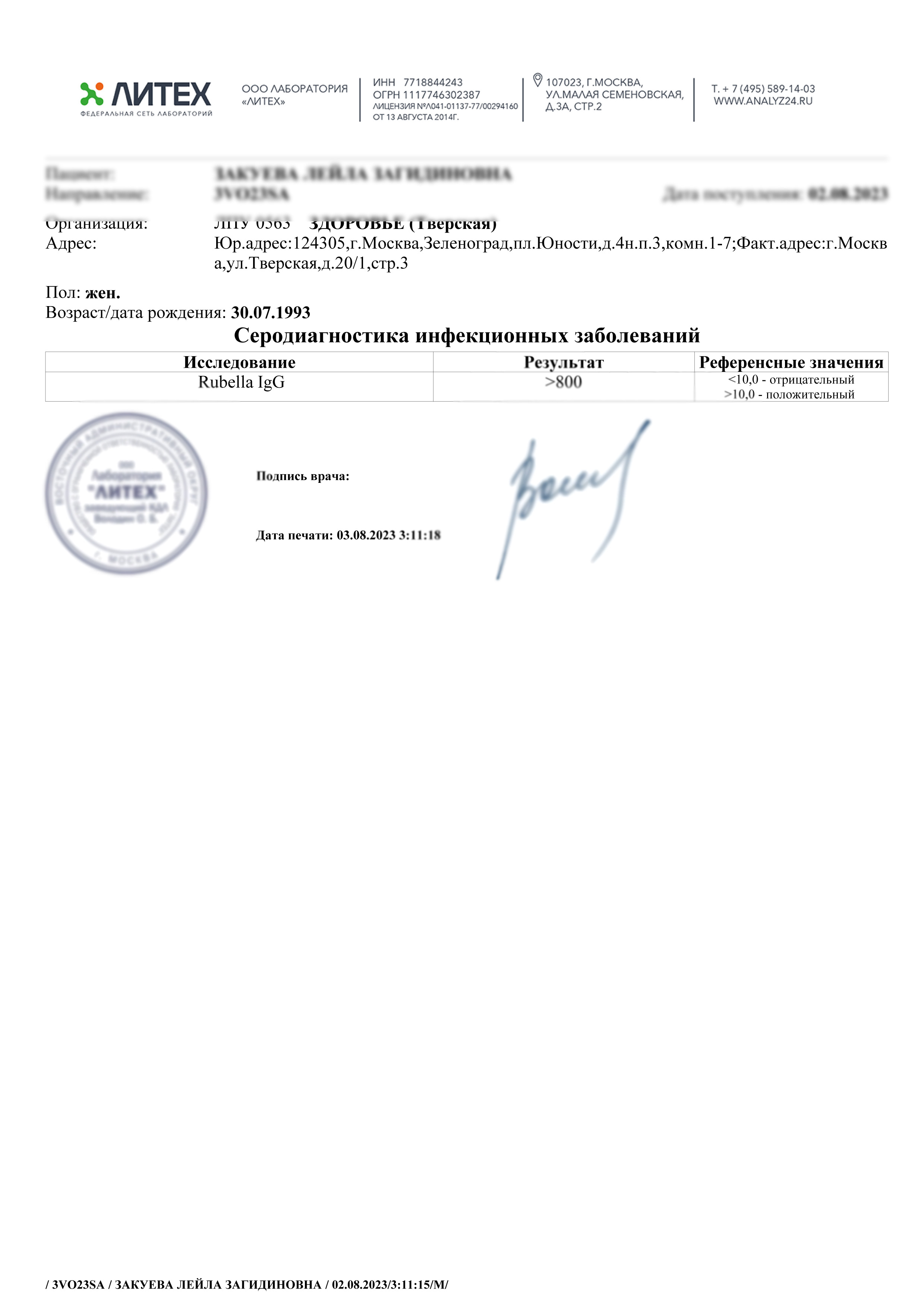 Анализ на антитела (наличие титр/имунного ответа) по КРАСНУХЕ |