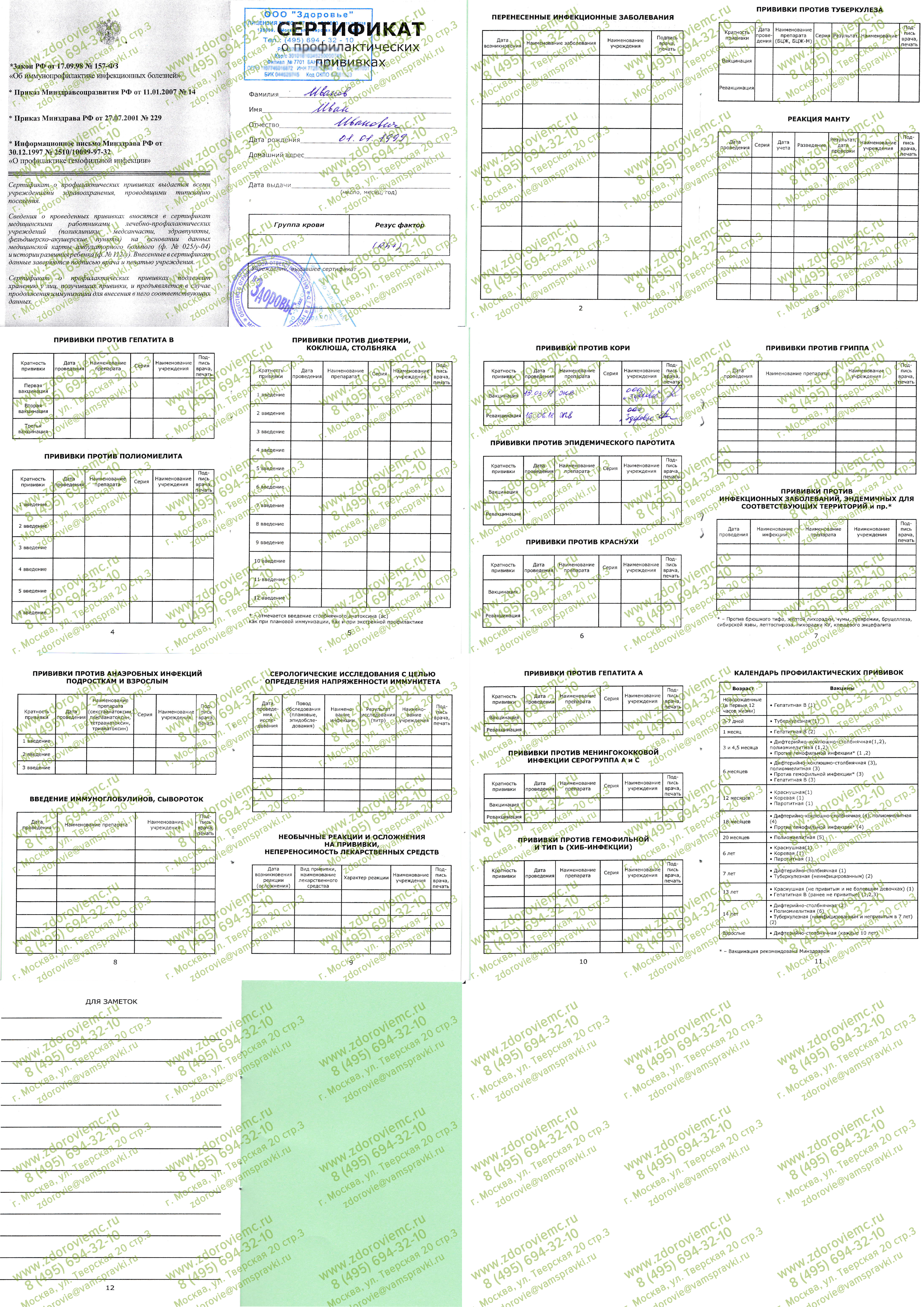 Сертификат о профилактических прививках ф.№ 156/у-93